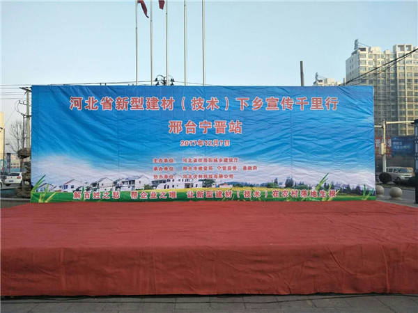 2017年12月7日,邢臺市泓升建材節(jié)能有限公司攜手建設廳于寧晉站一起舉行下鄉(xiāng)宣傳活動!其宗旨:解百姓之憂,幫企業(yè)之難,讓新型建材在農村落地生根!